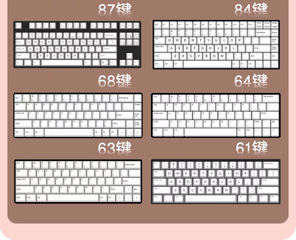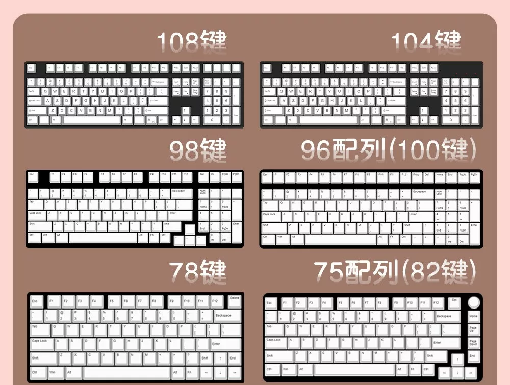 - Keycaps for up to 100% layout keyboards.