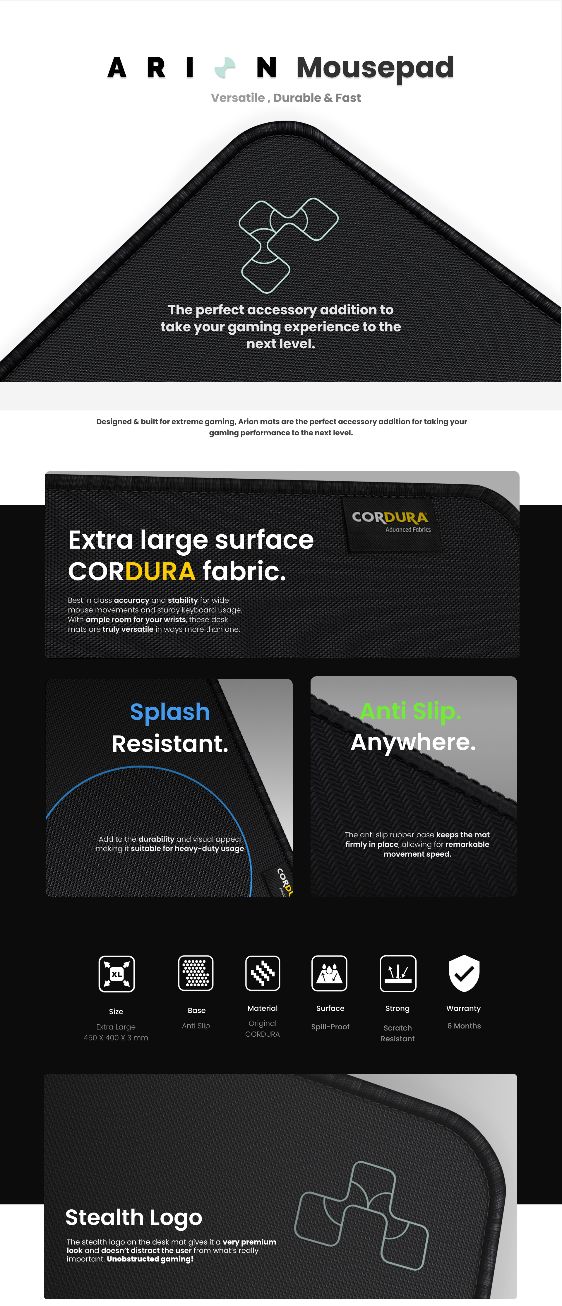 Amazing mousepad that fits all my needs. I was first skeptical about Cordura but Meckeys have done a great job in implementing it in a deskmat. Minimal design and looks elegant with my setup. As for performance, I was using a Hyperx speed mousepad with my Lamzu Atlantis and I would say that I prefer Arion deskmat.
