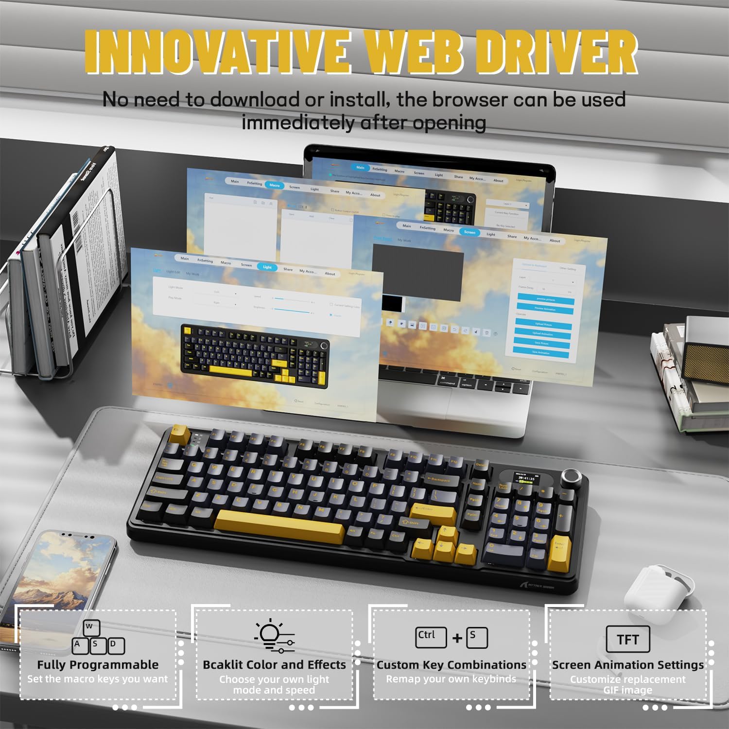 - Hot-swap Blueberry switches and PBT keycaps for great feel.
