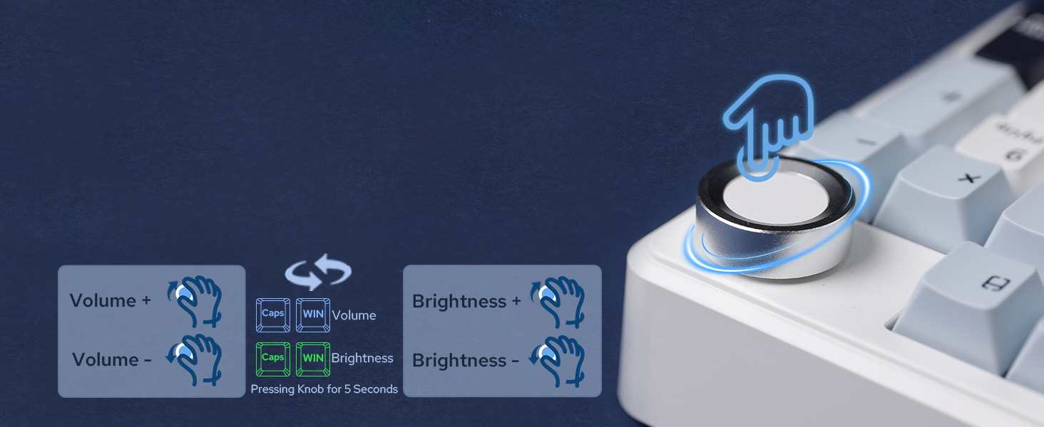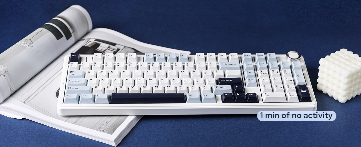 • The F99 PRO wireless gaming keyboard with compact 96% Layout with Volume Control Knob.
