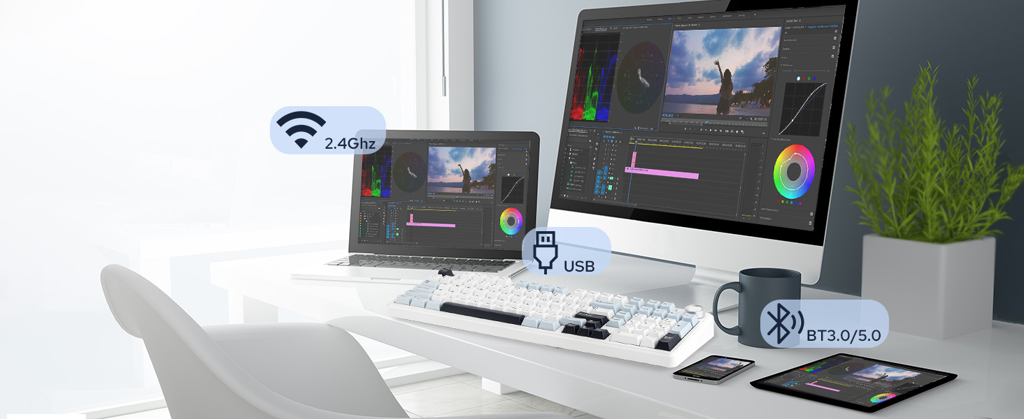 • The F99 PRO supports Bluetooth 5.0, 2.4GHz wireless, and USB Type-C connections,with an 8000mAh battery.