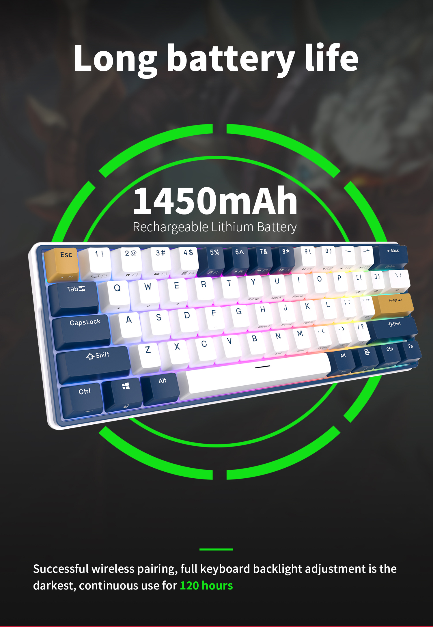 - Hot-swappable wireless mechanical keyboard with Skycyan key switches.