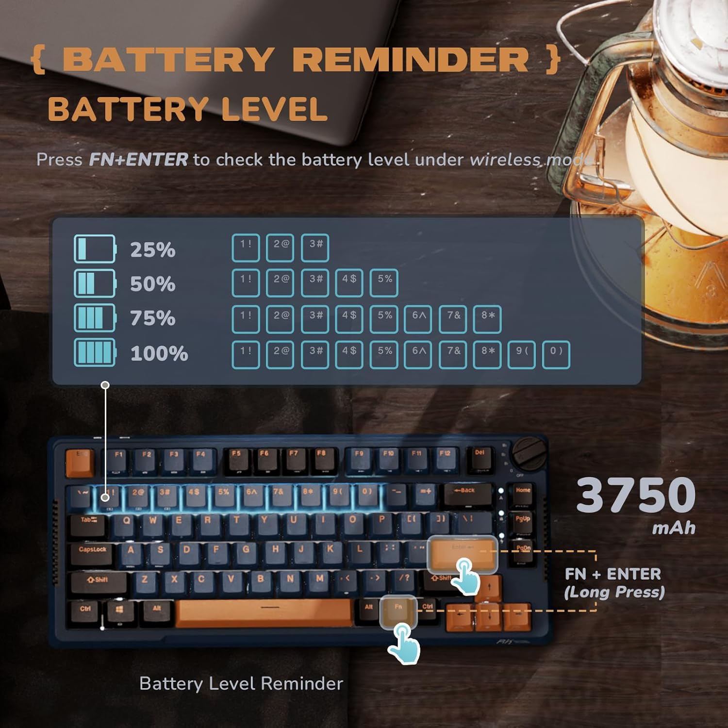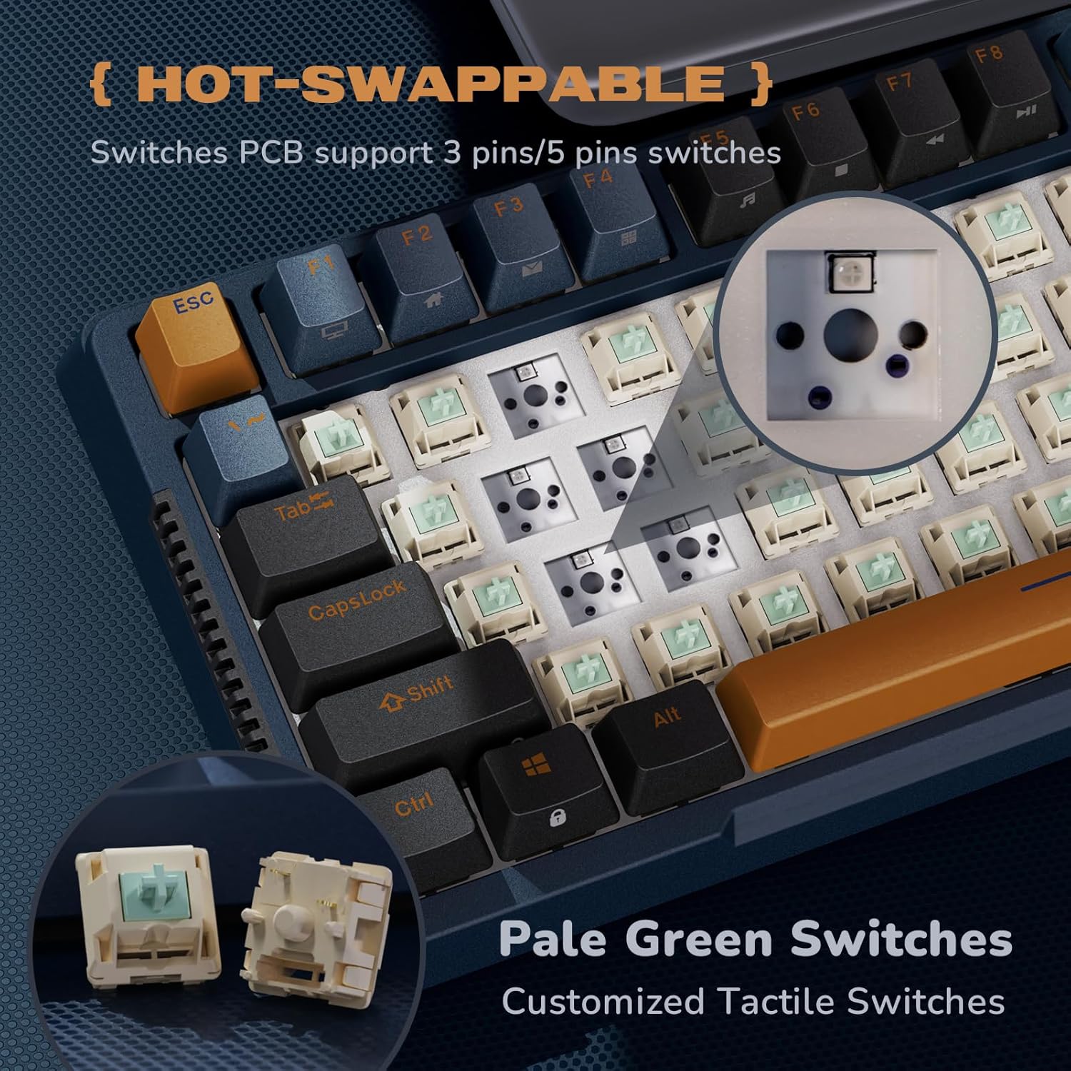 - Hot-swappable wireless mechanical keyboard with Mechanical key switches
