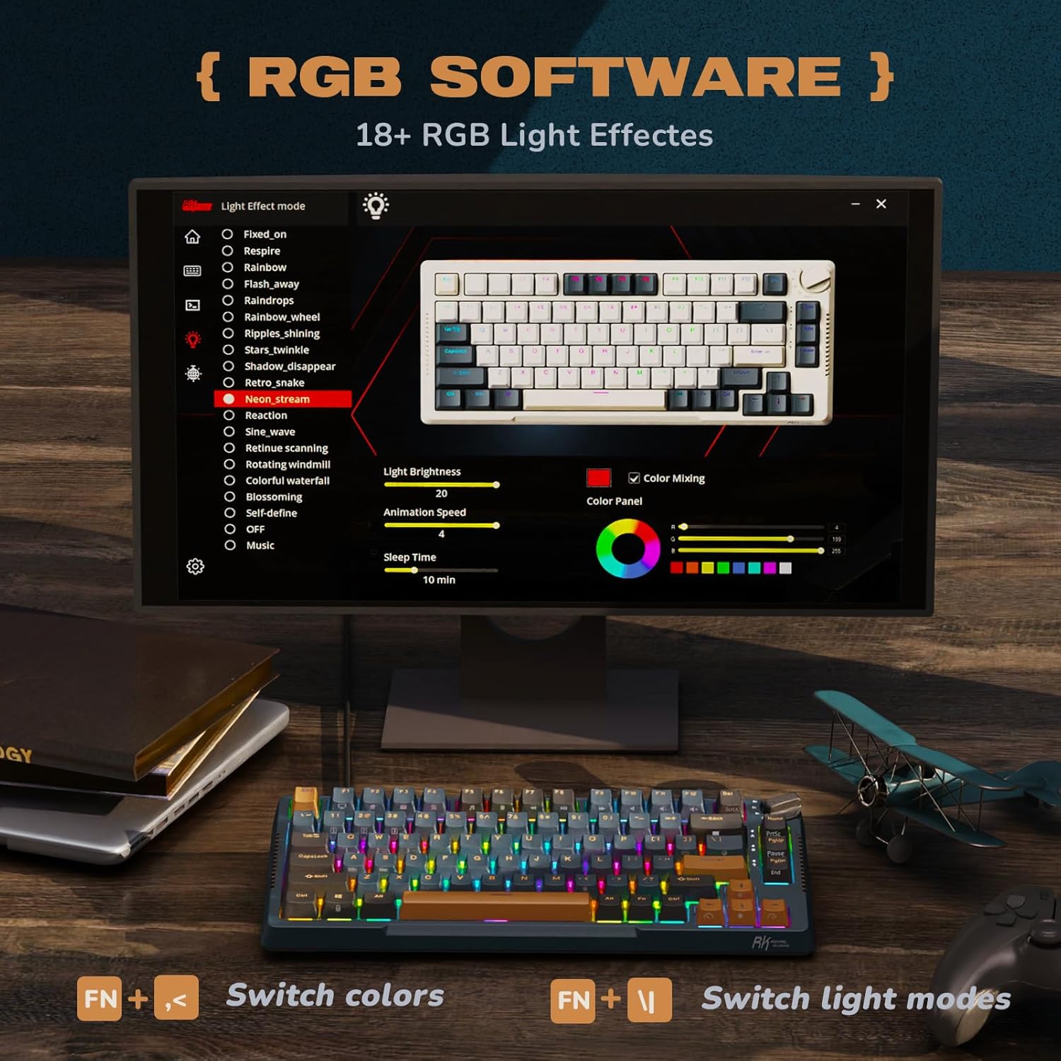 - South-facing RGB backlit keyboard. Customization available both on-board & via a Royal Kludge proprietary software..