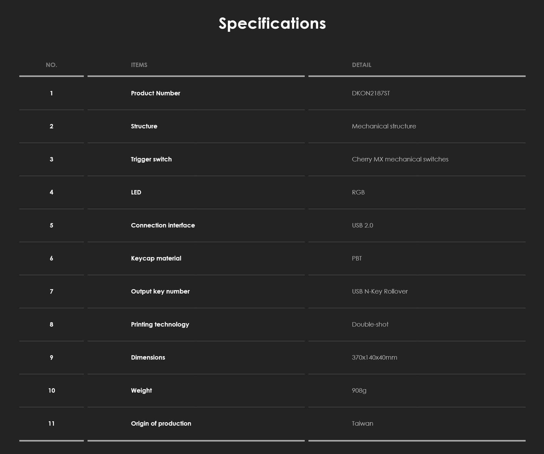 | Keycaps | PBT Double-shot |