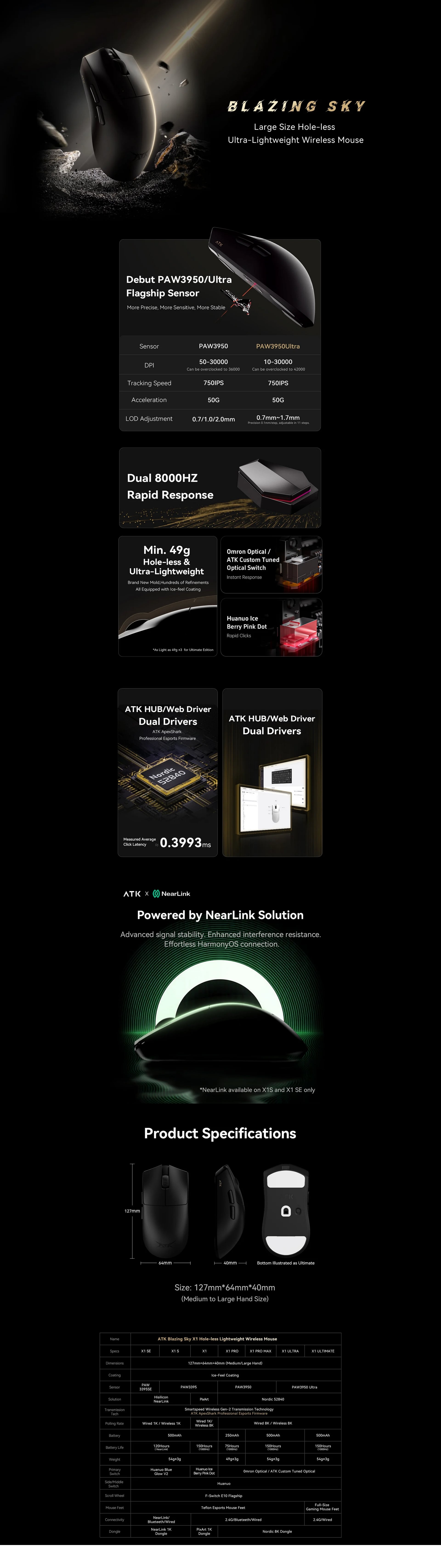 | Polling Rate | Wired 8K Hz/Wireless 8K Hz compatible (Comes with default 1k Dongle Except X1 Ultimate) |