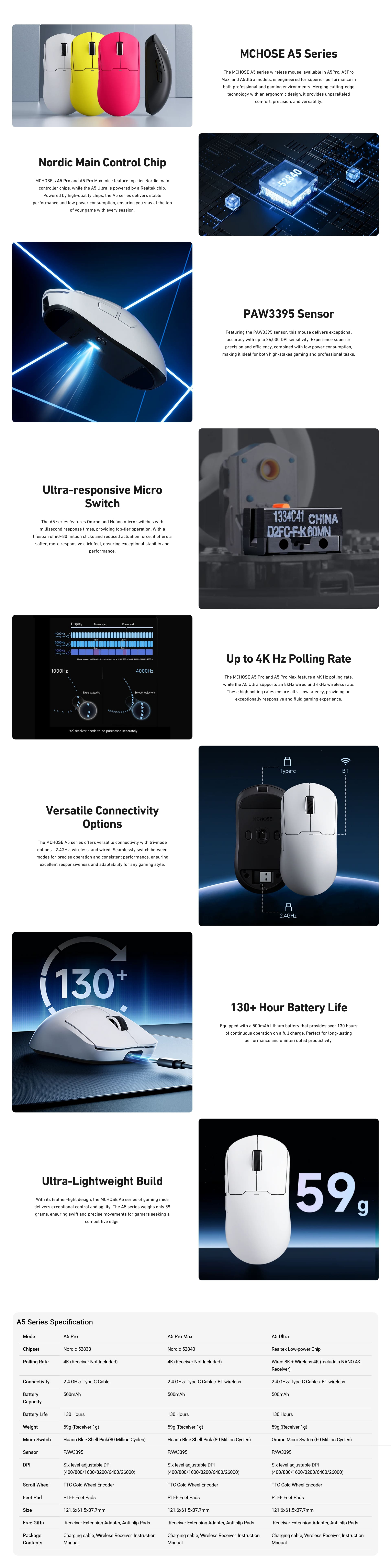 - A5 Series: 59g design for agile, precise control.